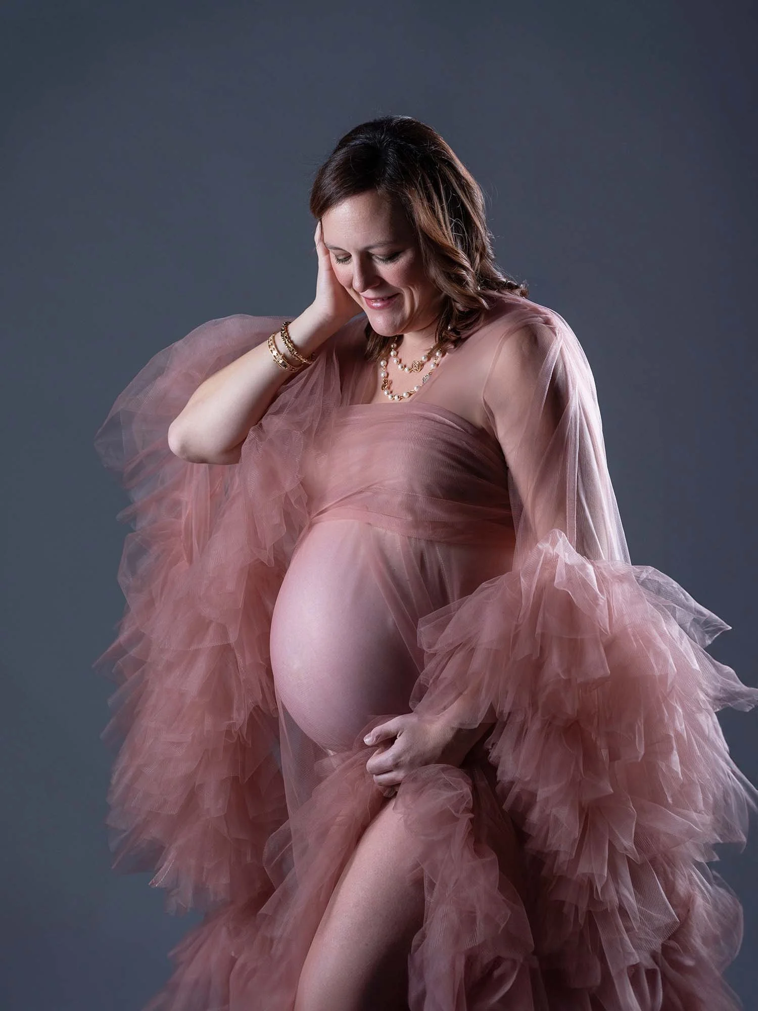 Our maternity sessions take place in our comfortable, private studio, allowing us to use creative lighting while avoiding Florida’s unpredictable weather.